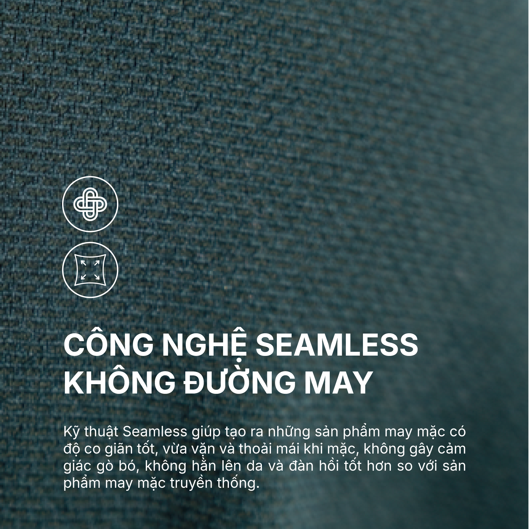 Công nghệ Seamless – không đường may là kỹ thuật hiện đại trong may mặc giúp tạo ra sản phẩm liền mạch, co giãn vượt trội và ôm vừa vặn cơ thể nhưng vẫn linh hoạt, mang lại cảm giác thoải mái tối đa mà không gây gò bó hay để lại vết hằn trên da; đồng thời khả năng đàn hồi tốt hơn so với sản phẩm truyền thống giúp giữ form bền đẹp lâu dài, mang đến trải nghiệm mặc “tự do – nhẹ – thoáng” nhưng vẫn chắc chắn và tôn dáng, đặc biệt phù hợp cho thời trang thể thao và activewear.