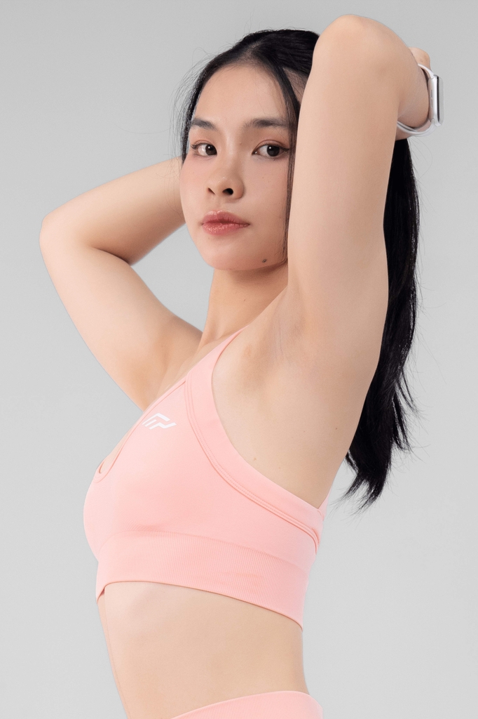 - Áo bra nổi bật với thiết kế phần lưng thông minh và dây đai to bản nhằm che khuyết đi điểm vùng lưng mà không bị quá hở nhưng vẫn vô cùng năng động.